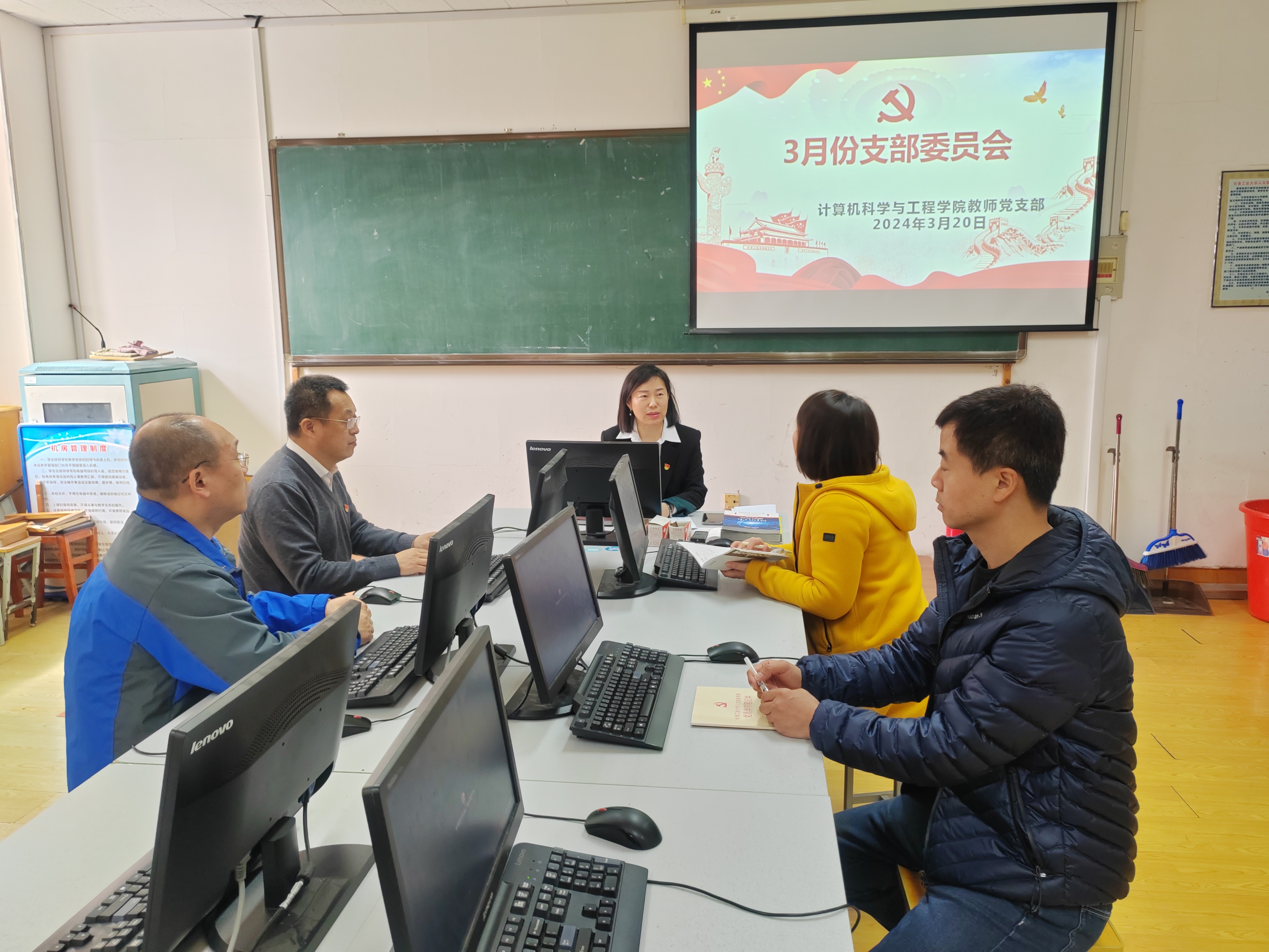 3月20日上午9:40分,计算机科学与工程学院教师党支部支部委员在J1-405召开支部委员会议。