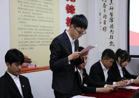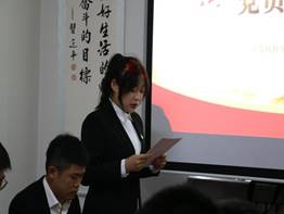 会上,第一学生党支部书记刘鹏、第二学生党支部书记韩磊简要介绍预备党员基本情况及大会出席情况。18位预备党员分别汇报了自己在预备考察期内思想、工作、生活等方面的情况与自身存在的不足之处,表明了自己为人民服务的态度和加入中国共产党的坚定决心,并表示在今后将以党员标准更加严格要求自己,不断努力,早日成为一名优秀的共产党员。