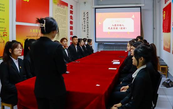 宣读《团章》,引导新团员了解团的服务宗旨,不断的增强个人的团员意识,用实际行动来展现当代青年的时代性与先进性。