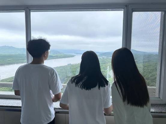 我们的第一站是圈河口岸。站在这个与朝鲜接壤的边境口岸,那种庄严肃穆的氛围让人心生敬畏。望着对岸的朝鲜,边境线上的宁静与庄重让人不禁感叹和平的珍贵。微风拂过,仿佛在诉说着两国之间友好交流的渴望。这里的一草一木、一砖一瓦都承载着边境地区的特殊使命,让我对国家安全和边境稳定有了更深刻的认识。