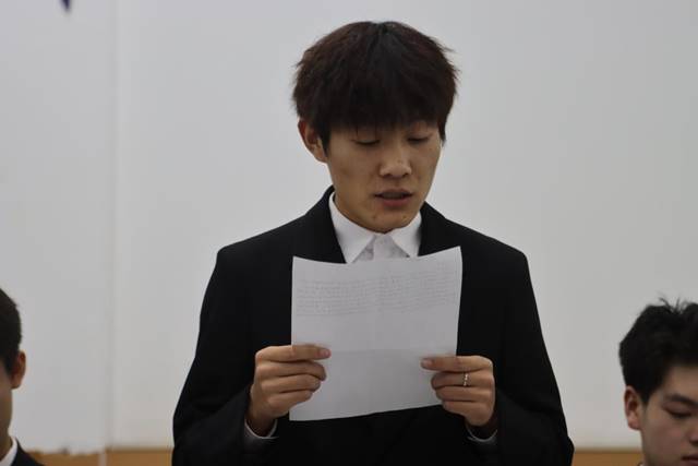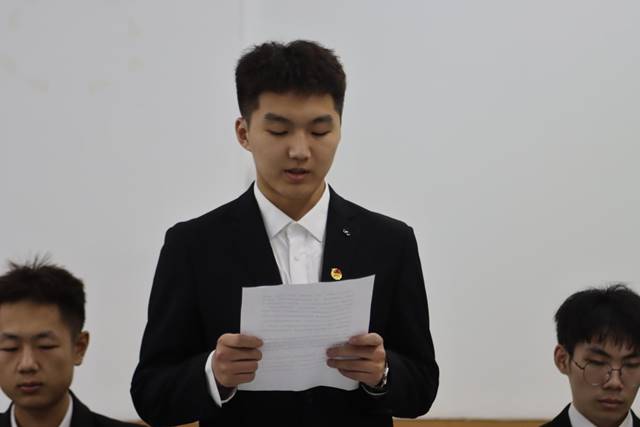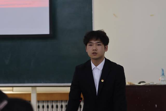 最后刘毅博同学总结在中国式现代化的新征程上,青年大学生要以坚定的理想信念、扎实的知识技能、良好的品德修养和勇于创新的精神,担当起时代赋予的重任,为实现中华民族伟大复兴的中国梦而努力奋斗。
