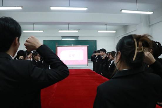 新团员们面向团旗,庄严宣誓:“我志愿加入中国共产主义青年团,坚决拥护中国共产党的领导……为共产主义事业而奋斗。”铮铮誓言,在教室内回荡,表达了他们对共青团的忠诚和为共产主义事业奋斗的决心。