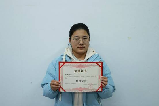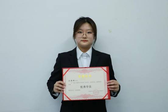 优秀学员代表:计算机科学与工程学院王英硕。她时刻牢记自己的职责,以高度的自律和进取精神。通过不懈努力,文化素养得以丰富,思想觉悟愈加高远,综合素质稳步提升。她也明确了自己的奋斗目标,积极为同学和老师们服务。