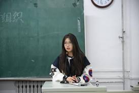 学生团委副书记黄仁茹同学围绕"强基固本、守正创新"的工作理念,从学团建设、实践活动、服务同学三个方面介绍了本学年工作计划。她号召全体学团成员积极参与学院特色集体活动项目,在实践中提升综合能力,以主动担当的姿态助力打造学团组织的实践平台,实现个人成长与学团发展的双向促进。
