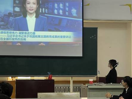 随后,孙嘉月同学为全体青马学员和入党积极分子播放习近平总书记的重要讲话内容视频,看完视频孙嘉月同学总结道,青年要坚定理想信念,志存高远,脚踏实地,勇做时代的弄潮儿。作为新时代的青年,我们不能仅仅满足于个人的小目标,而要将个人的理想追求与国家的发展紧密结合起来。在实现中华民族伟大复兴的征程中,我们要找准自己的定位,发挥自己的专业优势,为国家的发展贡献自己的力量。