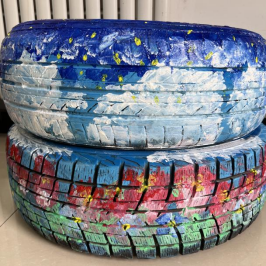 在彩绘过程中,志愿者们充分发挥各自的专业特长和艺术创意。擅长绘画的同学手持画笔,在轮胎上精心勾勒出各种精美的图案。其他同学则负责调色、递工具,协助绘画同学完成作品,大家分工明确、配合默契。再进行描绘上色,大大提高了绘制的效率和质量。
