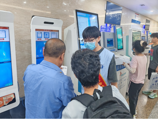 高效的服务背后,是志愿者们充分的准备。活动开展前,他们就已经熟悉了医院的科室布局,反复模拟操作各类自助设备,学习与不同年龄段患者沟通的技巧。在这些智能设备的背后,是志愿者们传递的温暖与关怀。他们用一次次规范的操作,让患者对智能就医流程不再陌生;用主动热情的服务态度,实现了科技与人文在医疗场景中的完美融合。无论患者是独自就医的老人,还是带孩子的年轻父母,亦或是因病情而焦虑的患者,都能在志愿者的帮助下,及时、专业地完成就医流程。