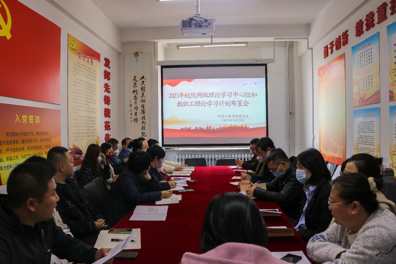按照学校党委部署,2023年3月29日下午,我院组织召开了2023年校院两级理论学习中心组和教职工理论学习计划布置会。会议由学院党总支书记、副院长、德育办主任王增宝老师主持,院长吴琼教授出席会议,全院教职工参会。