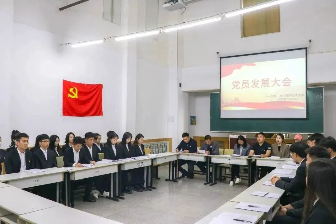 2023年5月25日下午,信息工程学院学生党支部在教一401教室召开党员发展大会,会议讨论了郑慧琳等22名发展对象被接收为中共预备党员的事宜。本次会议由学院学生党支部书记刘鹏老师主持,学院党总支书记、副院长、德育办主任王增宝老师出席会议,全体辅导员老师和在校学生党员参会。