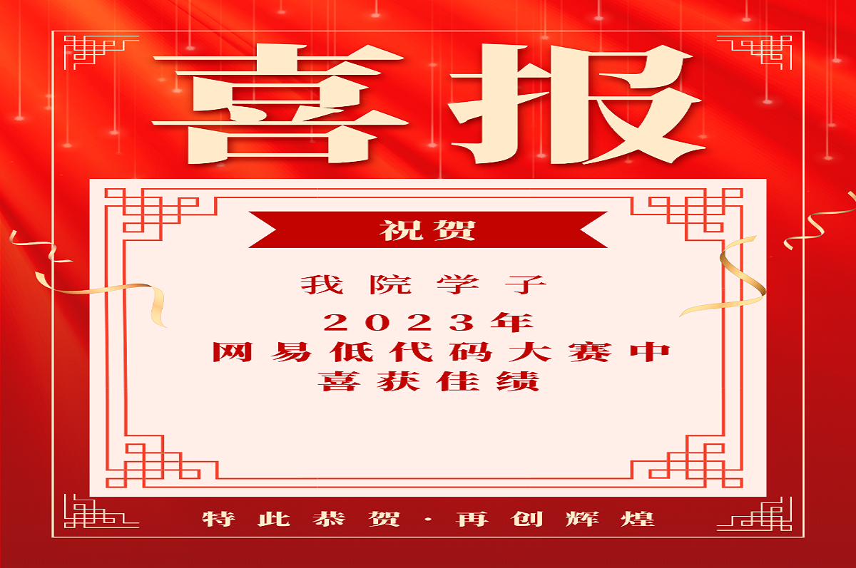 由网易数帆主办,网易数创、网易有道及多家企业和高校共同协办的2023网易低代码大赛圆满落下帷幕,我院多名同学获得奖项。