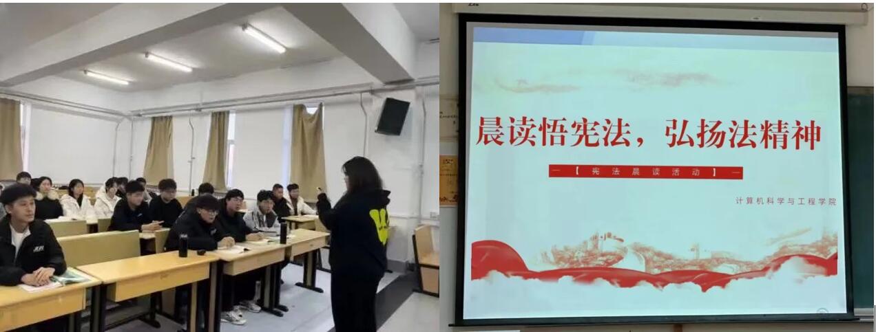 为推动宪法知识普及、弘扬宪法精神、树立宪法权威,推动宪法学习宣传教育走深走实,进一步引导广大青年学生自觉成为宪法的忠实崇尚者、自觉遵守者、坚定捍卫者,计算机科学与工程学院于11月28日开展“晨读悟宪法,弘扬法精神”活动,全体在校学生参加。