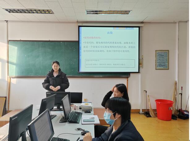 接着,新入职教师王佳试讲了C++语言中的函数重载,她分别从函数重载的概念、定义方式、使用方法、注意事项以及代码实现等方面,讲练结合的完成了试讲内容。
