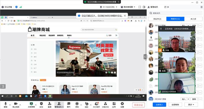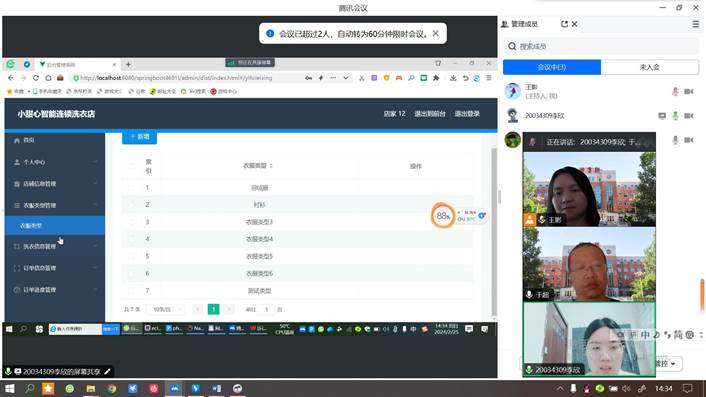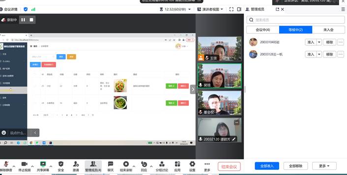 为确保答辩顺利进行,此次答辩会采用腾讯会议形式进行。学生们通过自述和线上展示程序的方式,向评审教师们详细介绍了毕业论文的选题背景、功能设计及程序实现情况,充分展示了本届毕业生在分析问题和解决问题方面的创新思维和工程能力。评审教师针对学生的开题报告与功能设计进行了深入的提问和点评,对学生的设计成果给予了肯定,同时针对设计缺陷提出修改建议。