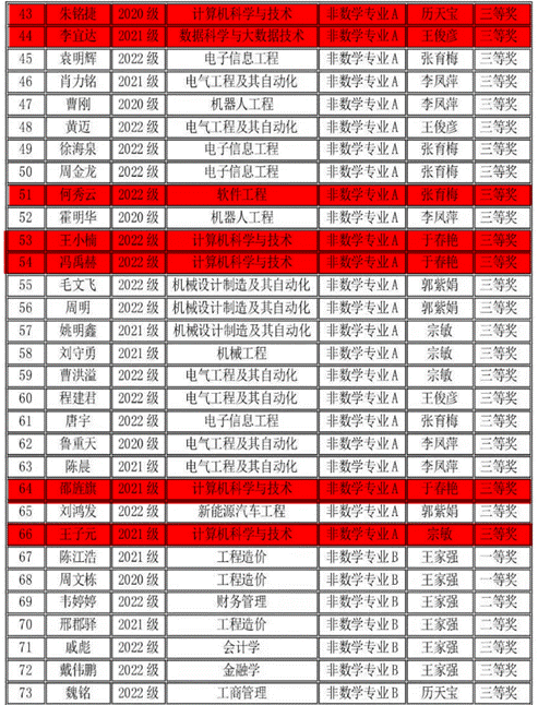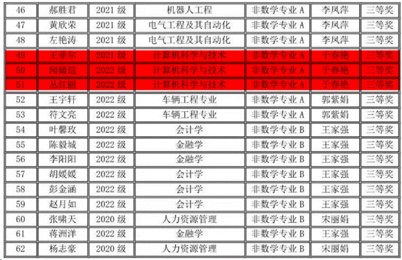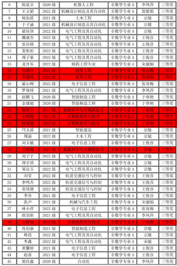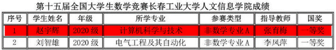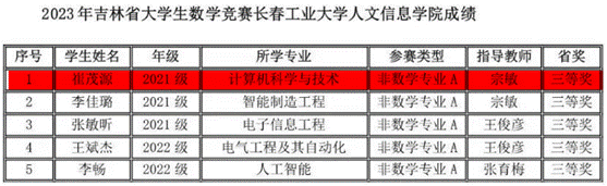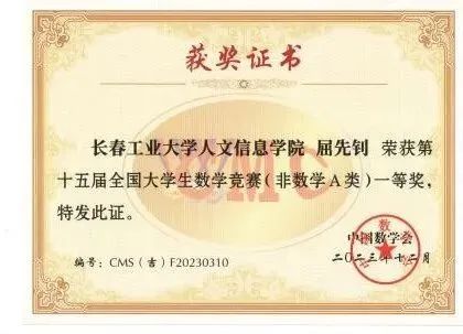 2023年11月11日上午,竞赛在全国各高校同时举行,全国共有1100多所高校28万大学生参赛,我校有210名同学报名参赛,同吉林省20多所高校7500余名学子共同竞技。我院学生在竞赛中取得好成绩,23位同学获得全国大学生数学竞赛非数学专业组(A类)一等奖6人、二等奖9人、三等奖8人;11名同学获得2023年吉林省大学生数学竞赛三等奖。