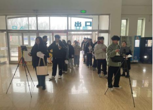 本次考试共安排6个考场和1个备用考场。每个考场进行3场考试,共18个场次。上午7.30分,在教务处工作人员祝老师和杨老师的指挥下,考生们有序通过考点入口的人脸检测设备。监考教师认真核实学生考试证件,指挥学生签到后进入指定位置,等待考试开始。