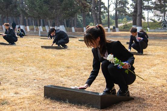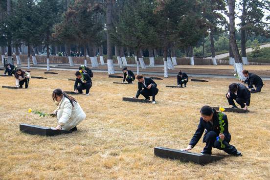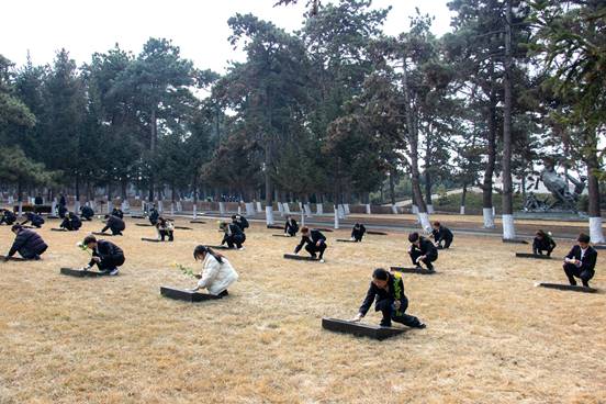 随后,师生们有序前往烈士墓区,敬献花束,擦拭烈士墓碑,以实际行动寄托对英烈的敬仰和追思之情。