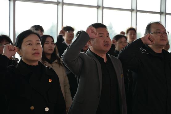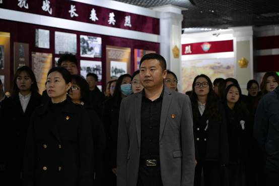 在党旗前,学院第三学生党支部书记霍瑞凇老师带领全体党员重温入党誓词,铿锵誓言回荡馆内。学生党员纷纷表示,愿将缅怀之情化为实际行动,让青春在党和人民需要的地方绽放。