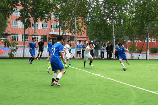 比赛当日,足球场边围满了观众,加油声、呐喊声热情似火,季军争夺战率先打响,对手实力强劲,开场便发起了猛烈的进攻。我院运动员迅速构建起坚固的防线,化解了对方一次又一次的攻势。