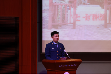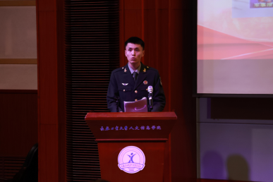 紧接着,谢宇晨同学分享了她的军旅追梦故事。她表示,王亚平太空授课的画面让她心潮澎湃,从而种下了航天报国的种子。在部队服役期间,她亲身参与了神舟十三号返回舱的保障任务,目睹返回舱划破长空的壮丽瞬间,热泪盈眶的她深刻感受到了作为中国航天事业参与者的无上荣光。她激励大家以青春筑梦强军,将个人梦想融入国家强盛的征程,愿驻军将士勇往直前,以赤子之心守护国家安全。